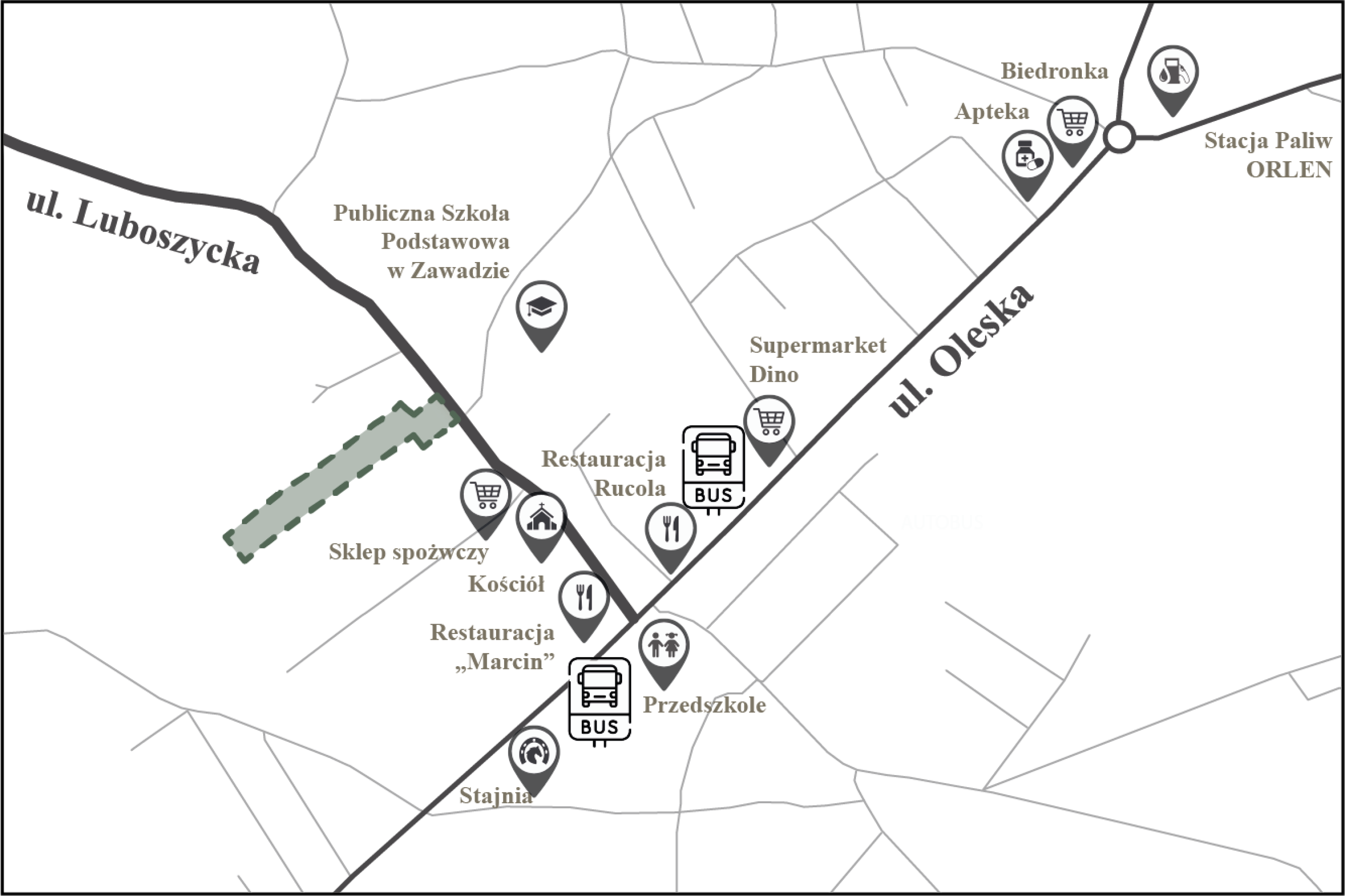 Okolica zapewnia wygodne życie codzienne. Bliskość przystanku autobusowego oraz łatwy dostęp do drogi krajowej nr 45 umożliwiają szybki dojazd do Opola – zaledwie w kilka minut.